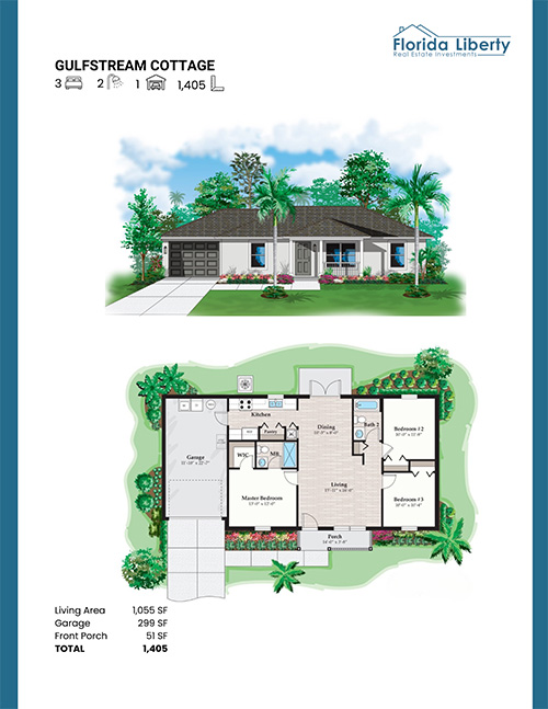 Gulfstream Cottage 3 Bedrooms – 2 Bathrooms – 1 Car Garage – Living Area 1055 SF – Total 1405 SF Gulf Stream Cottage Virtual Tour Click Image for Larger View Download Specification » Project navigationPreviousPrevious project:HeavenNextNext project:Seabreeze Retreat