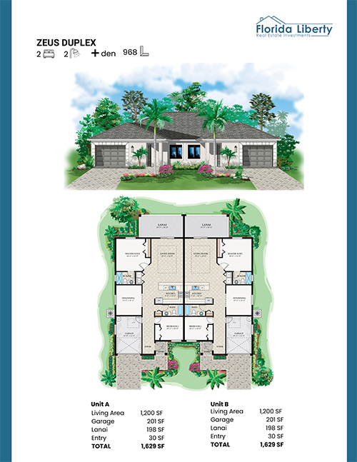 Zeus Duplex 2 Bedrooms – 2 Bathrooms – Den – 1 Car Garage – Living Area 1200 SF – Total 1629 SF Zeus Duplex Virtual Tour Click Image for Larger View Download Specification » Project navigationPreviousPrevious project:Caribbean Sunrise